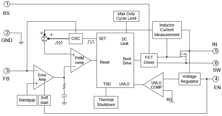 多重保護(hù)功能:包括過熱關(guān)斷、輸入欠壓保護(hù)、BS欠壓保護(hù)和短路保護(hù),確保芯片和系統(tǒng)的安全。