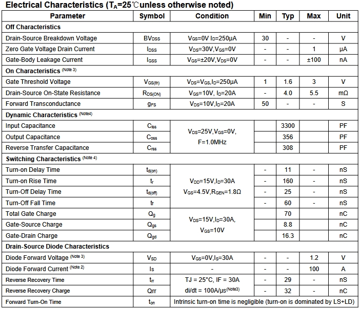 Vs =30V,ID =100A