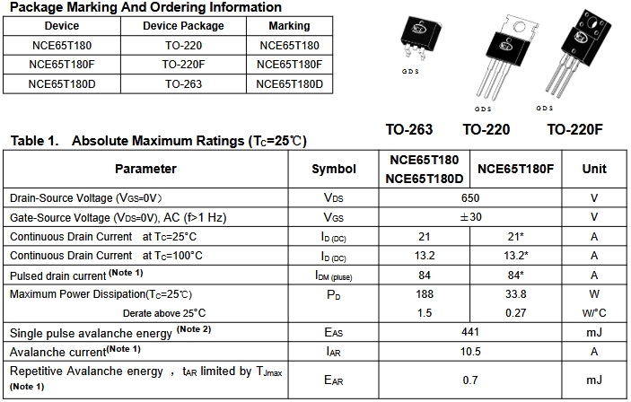 NCE65T180F概述