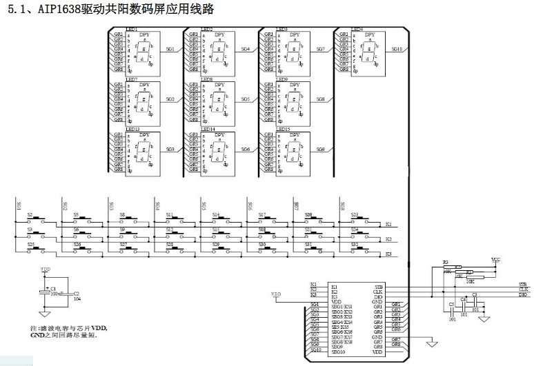 AIP1638提供CLK、DIO、STB等串行接口,支持高速數(shù)據(jù)傳輸。這種串行接口設(shè)計(jì)不僅簡(jiǎn)化了電路連接,還提高了數(shù)據(jù)傳輸?shù)男屎头€(wěn)定性,使得AIP1638能夠與微控制器等外部設(shè)備無(wú)縫對(duì)接,實(shí)現(xiàn)復(fù)雜的控制功能。