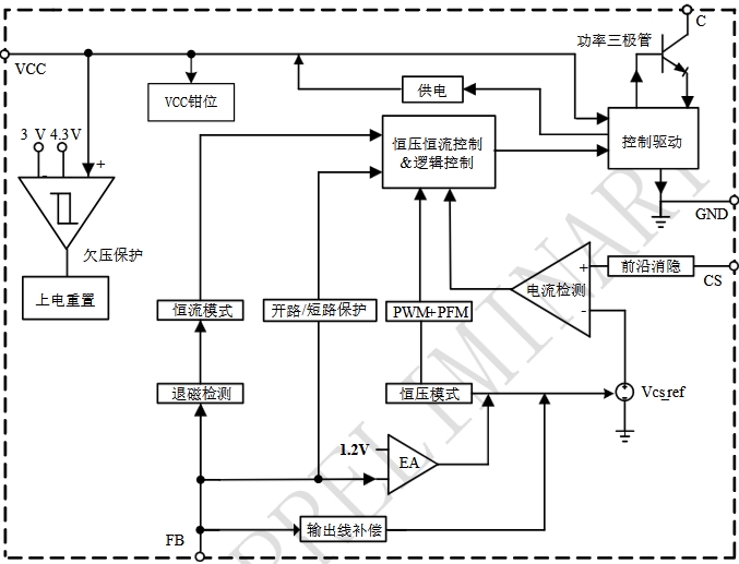 芯片通過檢測變壓器原邊的電流和電壓實現(xiàn)恒流和恒壓功能,能夠提供高精度的輸出控制。同時,其內(nèi)置的輸出線損補償技術(shù)可以有效補償輸出電流在輸出線上的損耗壓降,進一步提高輸出精度。