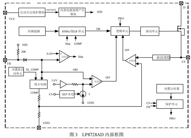 峰值電流控制模塊:通過CS引腳檢測開關電流,實現精確的電流模式控制。