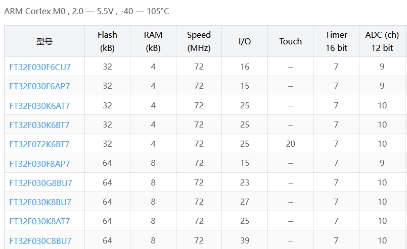 (本文按 Flash/RAM 從小到大排列)