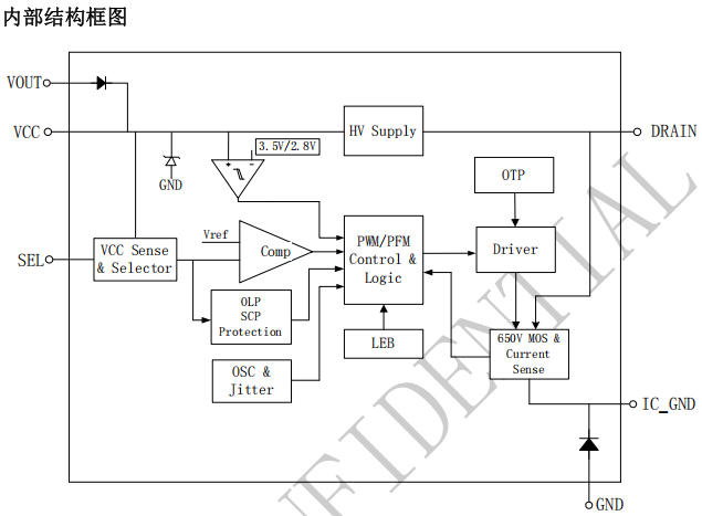 1. 高壓啟動后關斷,待機僅 140 μA;