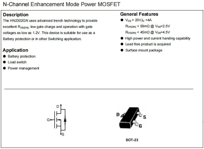 一句話推薦:如果你正在找一款單節鋰電能用、4A電流夠、SOT-23封裝、價格夠低的N溝道MOS,HN2302GN是值得測試的選項。深圳三佛科技提供技術支持,批量價格有優勢~