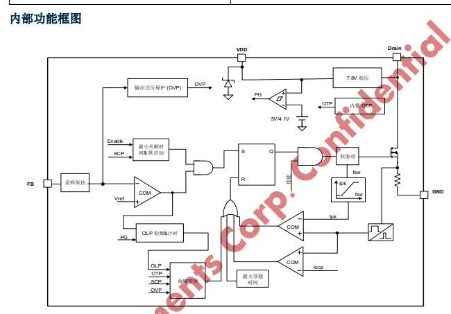 KP3116 集成有完備的帶自恢復(fù)功能的保護(hù)功能: VDD 欠壓保護(hù)、逐周期電流限制、異常過(guò)流保護(hù)、輸出過(guò)壓保護(hù)、過(guò)熱保護(hù)、過(guò)載保護(hù)和 VDD 過(guò)壓保護(hù)等。