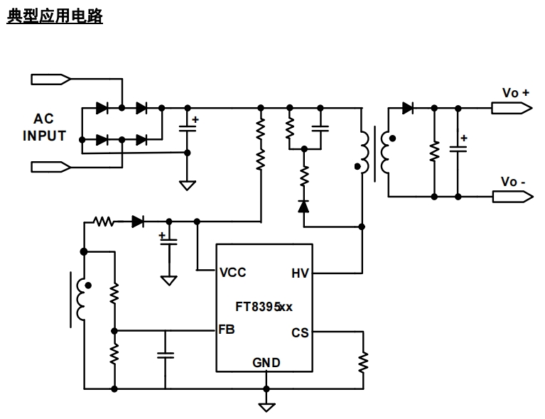 FT8395提供了非常多的保護(hù)功能,比如逐周期的峰值電流限制和恒流控制保證了在重載下的過流保護(hù),過溫保護(hù),過壓保護(hù),F(xiàn)B引腳輸入欠壓鎖定,使得系統(tǒng)在發(fā)生異常時能快速關(guān)斷,當(dāng)異常狀況解除后能及時重啟。