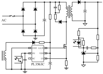 PL3563C 是一款低成本、高性能的電流模PWM控制芯片,其優異的性能可滿足小功率開關電源的低功耗要求。芯片的啟動電流典型值僅5uA,可減小啟動電路損耗;而較低的工作電流也可以提高系統的效率;芯片內置的“無噪音綠色模式”同樣能夠提高系統的效率,同時這種綠色模式能使開關電源滿足嚴格的能源損耗要求。