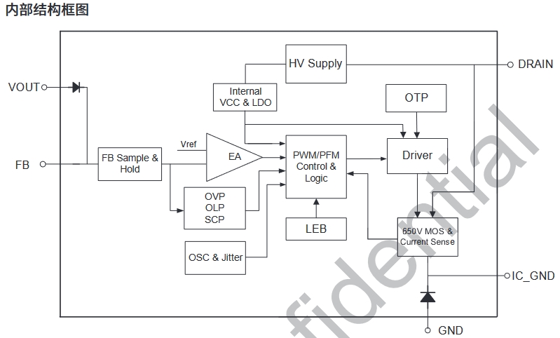BP8523D 是一款高性能、高集成度、低待機(jī)功耗的開關(guān)電源驅(qū)動(dòng)芯片,適用于全電壓 85~265VAC 輸入的 Buck、Buck-Boost 變換器拓?fù)鋺?yīng)用。 BP8523D 內(nèi)部集成了 650V 高壓 MOSFET、高壓?jiǎn)?dòng)和自供電電路、電流采樣電路、電壓反饋電路以及續(xù)流二極管!采用先進(jìn)的控制技術(shù),無需外部 VCC 電容和環(huán)路補(bǔ)償即可實(shí)現(xiàn)優(yōu)異的恒壓輸出特性,極大地減少外圍器件數(shù)量,節(jié)省系統(tǒng)成本和體積,同時(shí)提高可靠性。