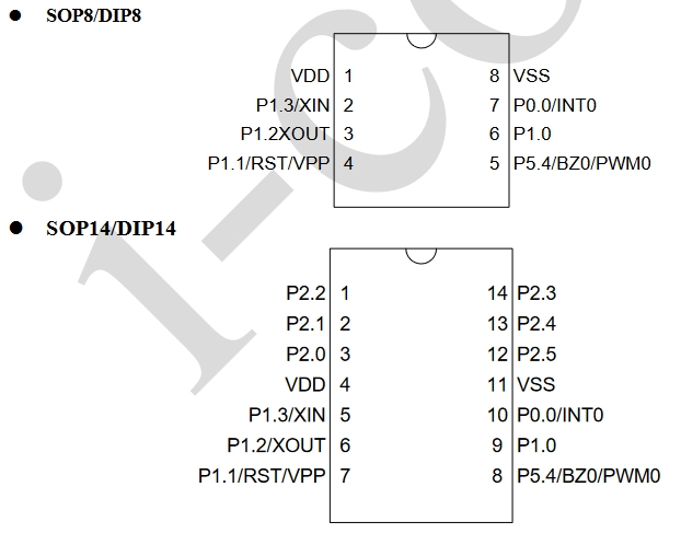 存儲(chǔ)器:包括1K的OTP ROM和48字節(jié)的RAM,用于存儲(chǔ)程序和數(shù)據(jù)。