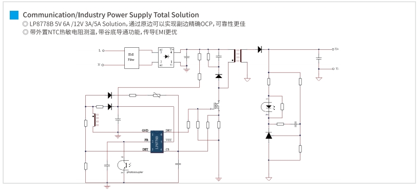 對于200W以上的超高功率應用,定頻CCM模式PFC控制器如LP6655xx系列,提供了高效的功率因數校正和穩定的電源輸出。這些控制器適用于大型工業設備和通信基礎設施,如數據中心和網絡設備。