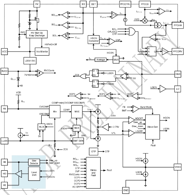 集成PFC:內(nèi)置的PFC控制器可以提高功率因數(shù),減少諧波失真。