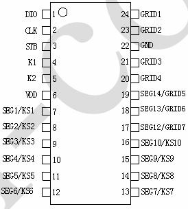 數(shù)據(jù)傳輸:通過DIO、STB和CLK三條線實(shí)現(xiàn)與外部控制器的數(shù)據(jù)傳輸。DIO線上的數(shù)據(jù)在STB線的上升沿被鎖存,CLK線提供時(shí)鐘信號控制數(shù)據(jù)的傳輸節(jié)奏。