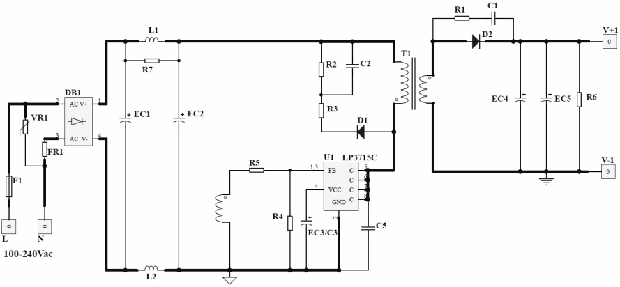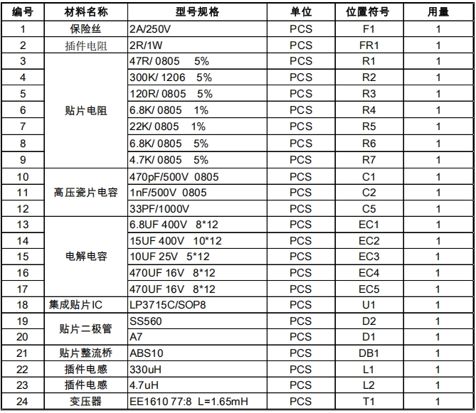 LP3715C:作為PWM控制器,負(fù)責(zé)調(diào)節(jié)輸出電壓和電流。